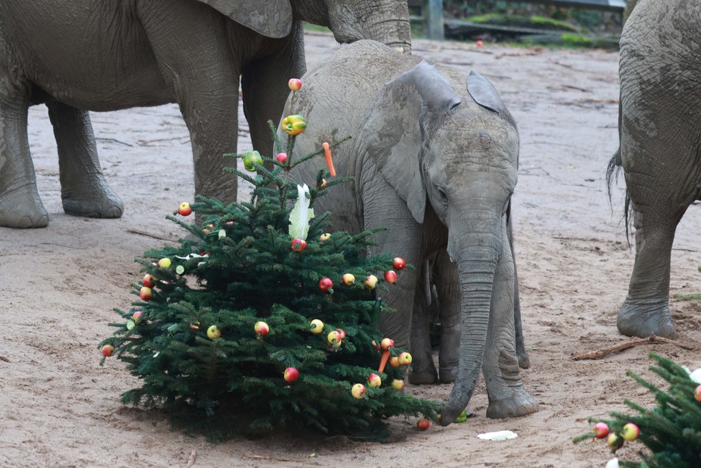 Wir schmücken Tannenbäume für die Elefanten